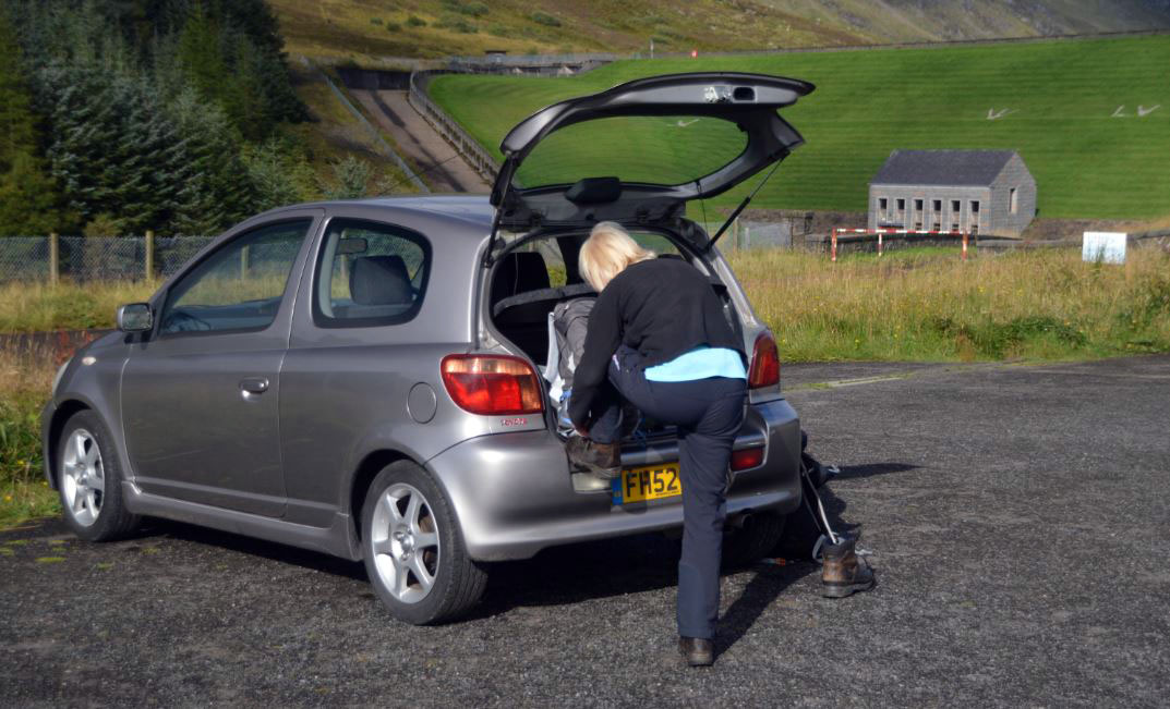 in the New Parking Area at the End of the Road in Glen Lochay